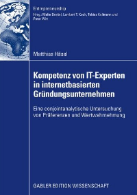 Häsel, Matthias (2009): Kompetenz von IT-Experten in internetbasierten Gründungsunternehmen: Eine conjointanalytische Untersuchung von Präferenzen und Wertwahrnehmung. Wiesbaden: Gabler.